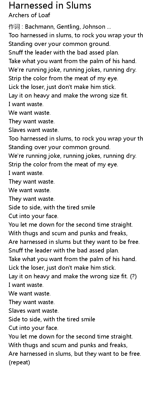 | Too harnessed in slums, to rock you wrap your throat. | |