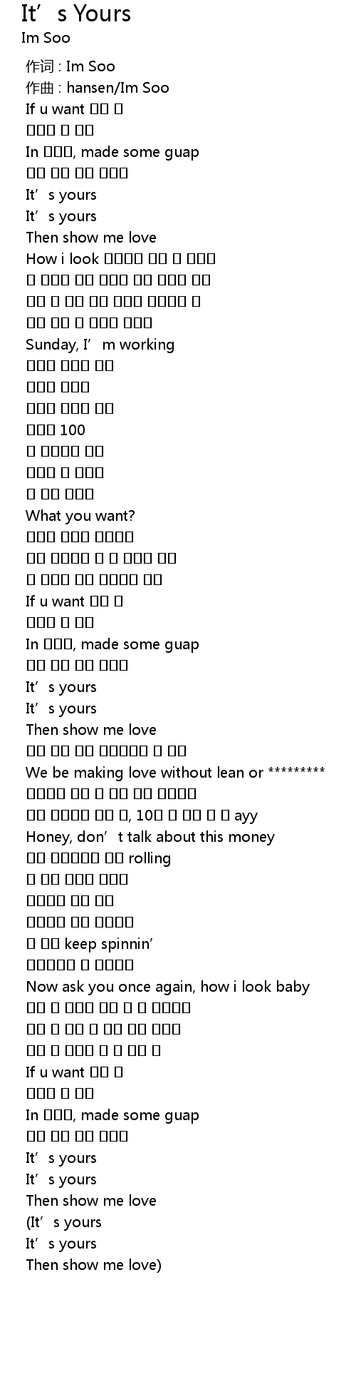 | [00:01.000] | 作曲 : hansen/Im Soo |