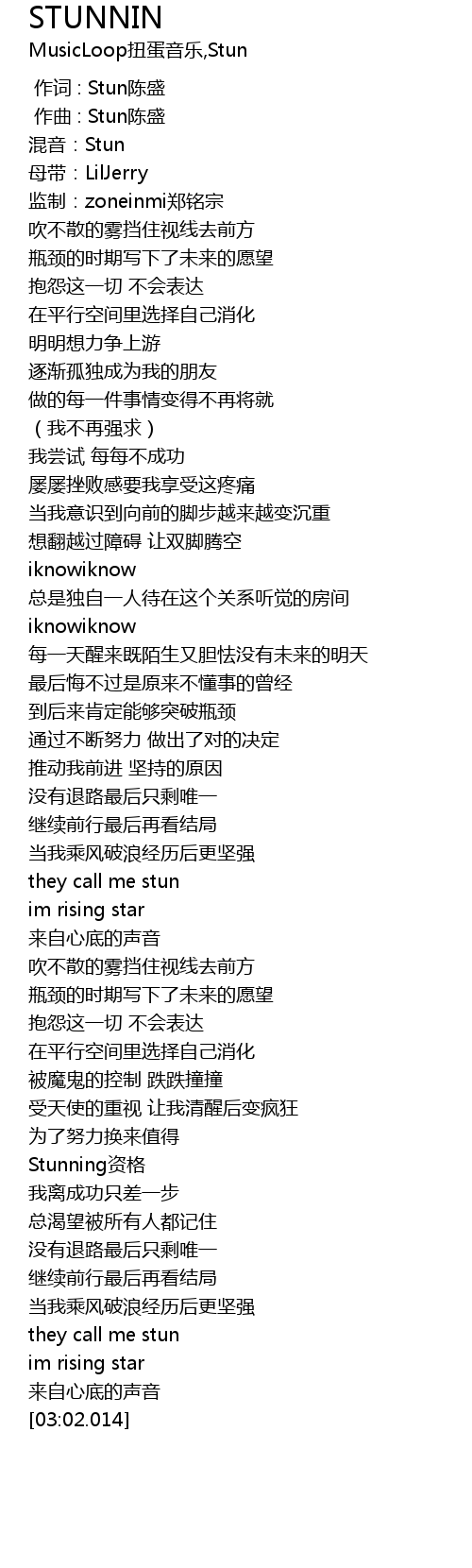 | [00:01.000] | 作曲 : Stun陈盛 |