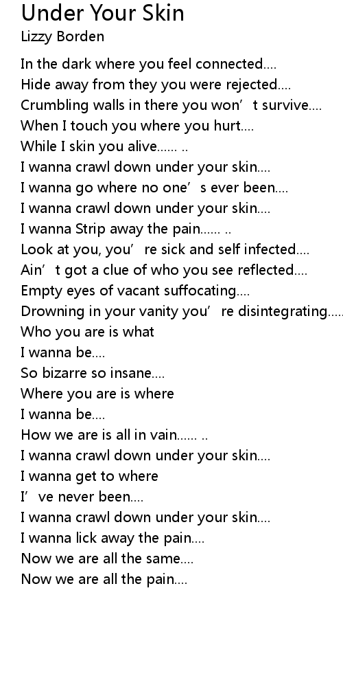 | I wanna crawl down under your skin.... | |