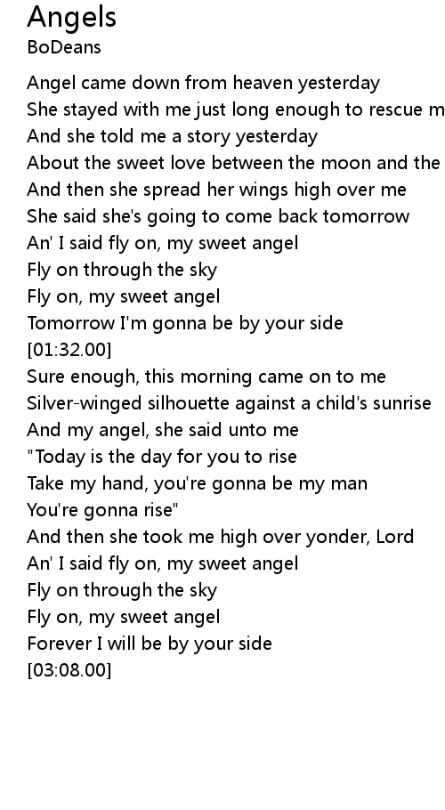 An' I said fly on, my sweet angel |