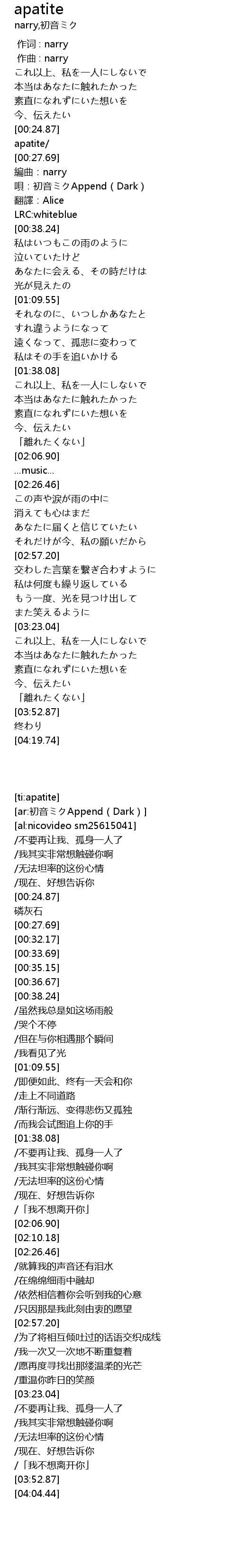 唄:初音ミクAppend(Dark) |