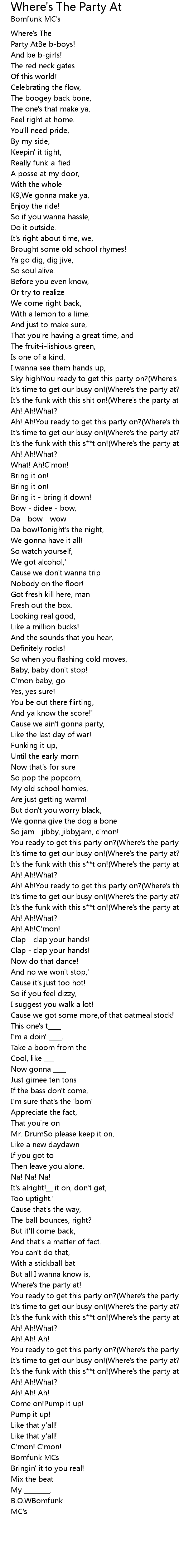 It's the funk with this s**t on!(Where's the party at?) |