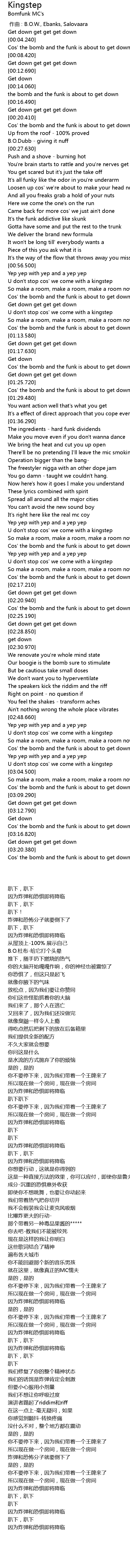 | [03:02.690] | U don't stop cos' we come with a kingstep |