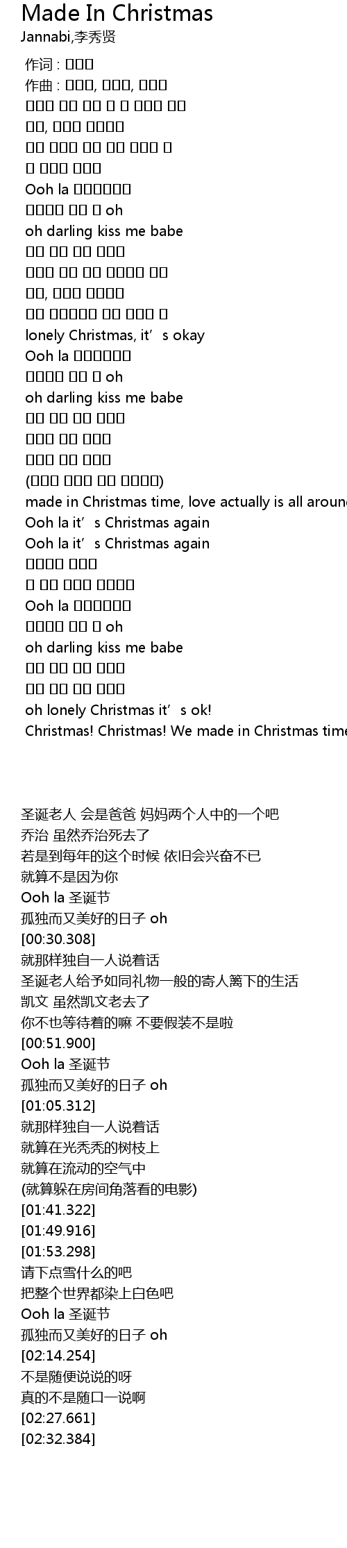 | [02:32.384] | Christmas! Christmas! We made in Christmas time! |