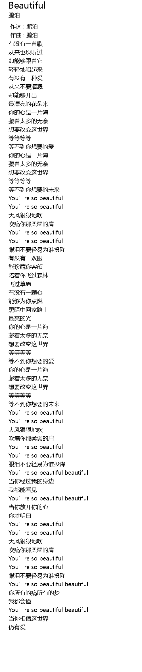 | [03:20.99] | You’re so beautiful beautiful |