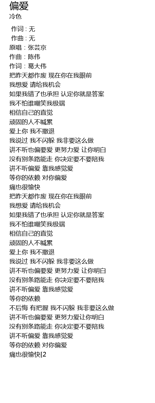 | [03:08.236] | 等你的依赖 对你偏爱 |