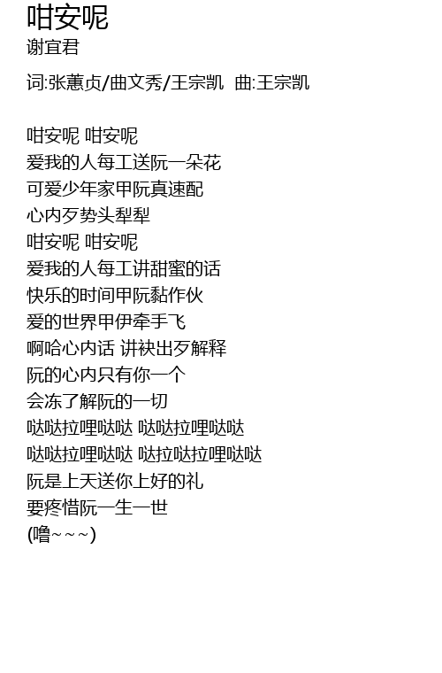 | 阮是上天送你上好的礼 | |