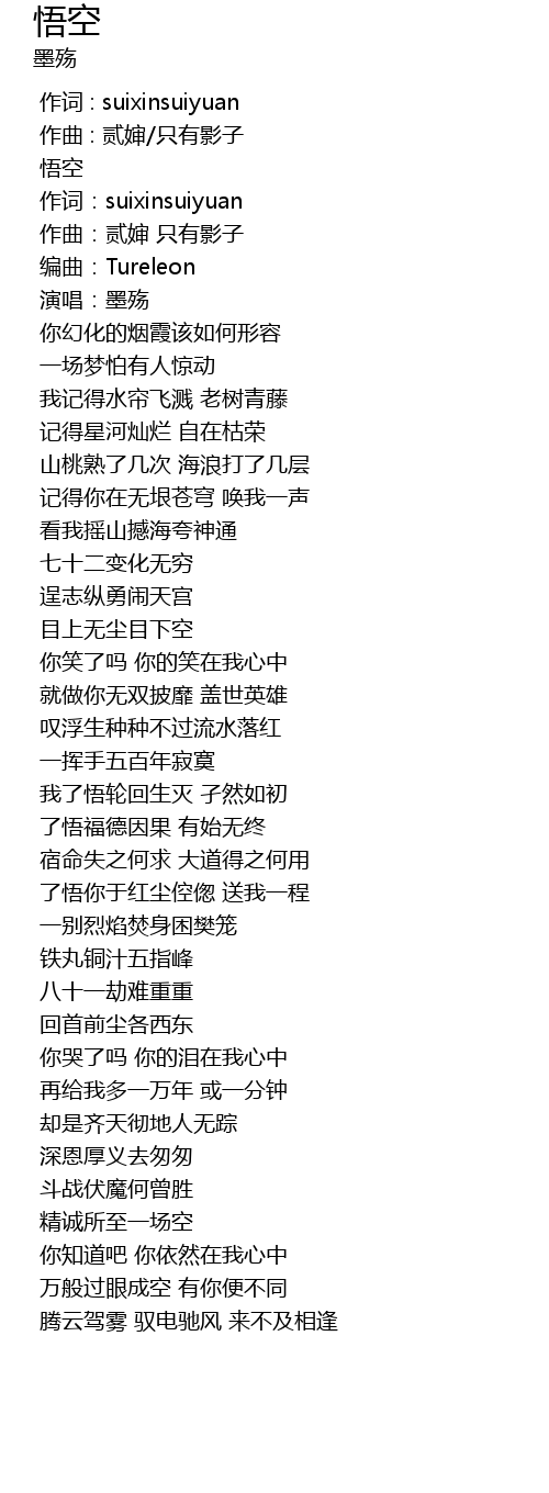 | [00:01.50] | 悟空 |
