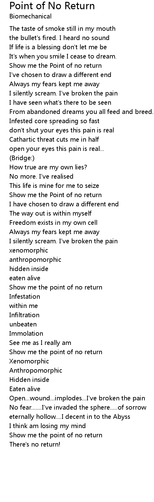 Show me the Point of no return |