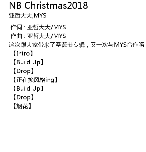 | [00:00.829] | zhè cì gēn dà jiā dài lái le shèng dàn jié zhuān jí, yòu yī cì yǔ MYS hé zuò gē! |