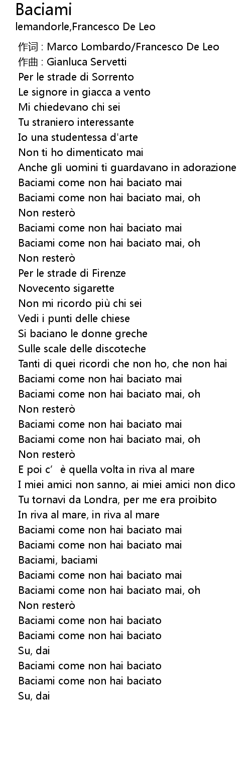 | [02:36.452] | Baciami come non hai baciato mai, oh |