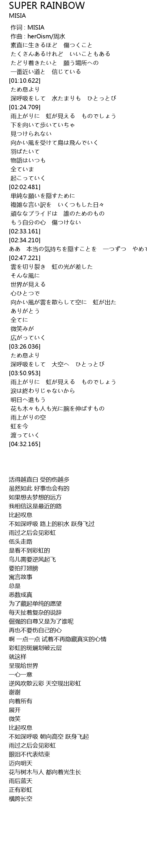 | [02:51.797] | 雲を切り裂き 虹の光が差した |