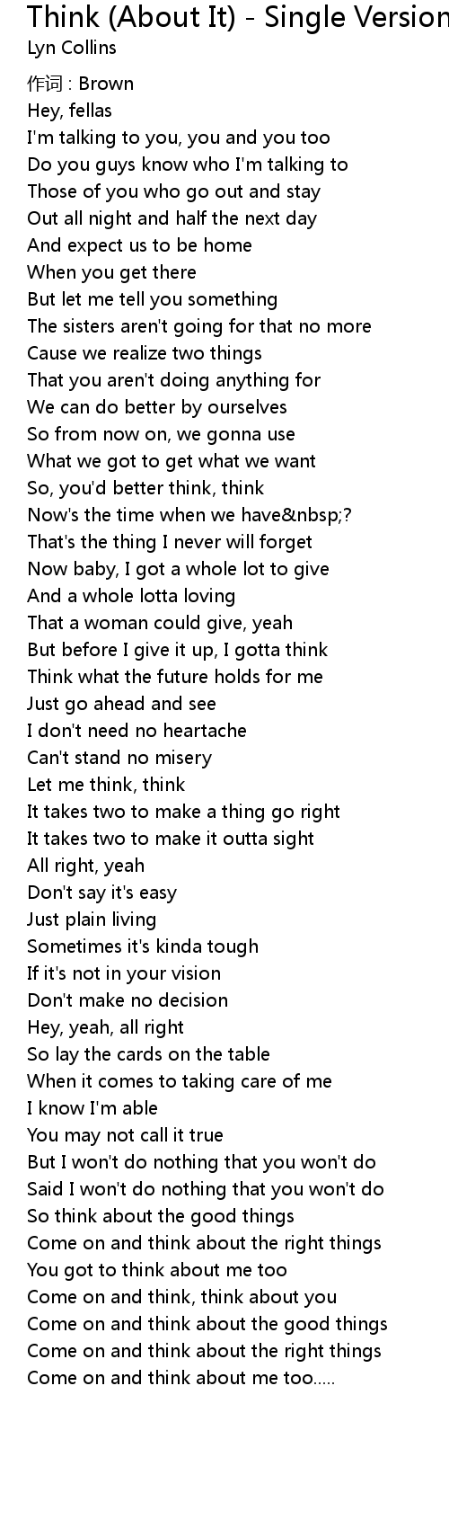| But before I give it up, I gotta think | |