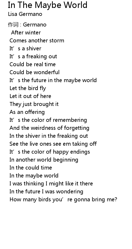 | Song | In The Maybe World |