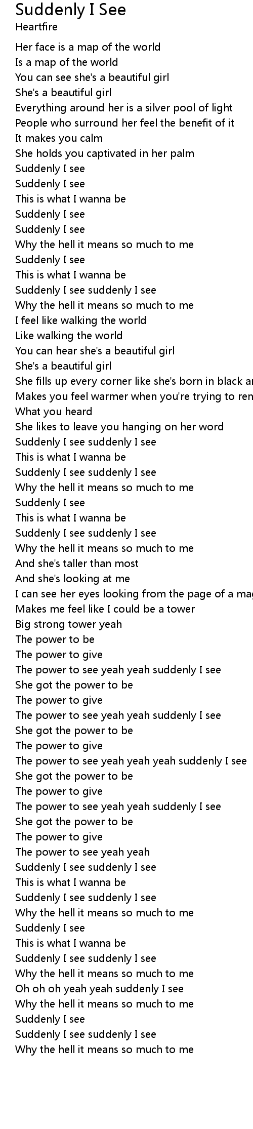 Suddenly I see suddenly I see |