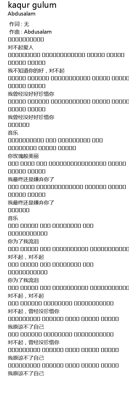| [02:05.394] | مەن قارا يۈزئۆرۈپتىمەن ،كەچۈر گۈلۈم كەچۈر گۈلۈم |
