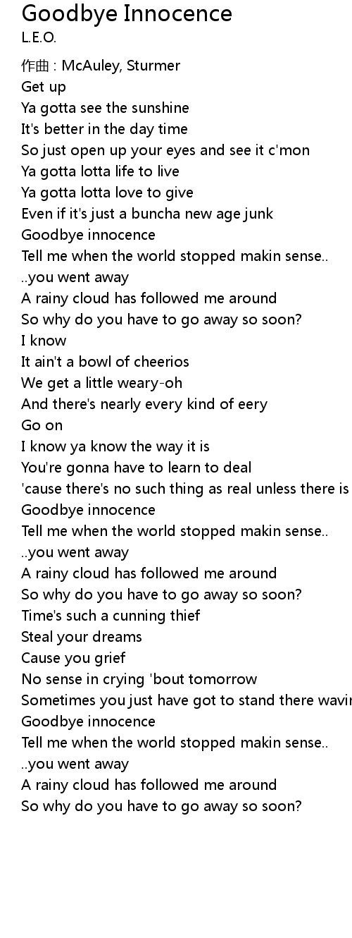 | Goodbye innocence | |