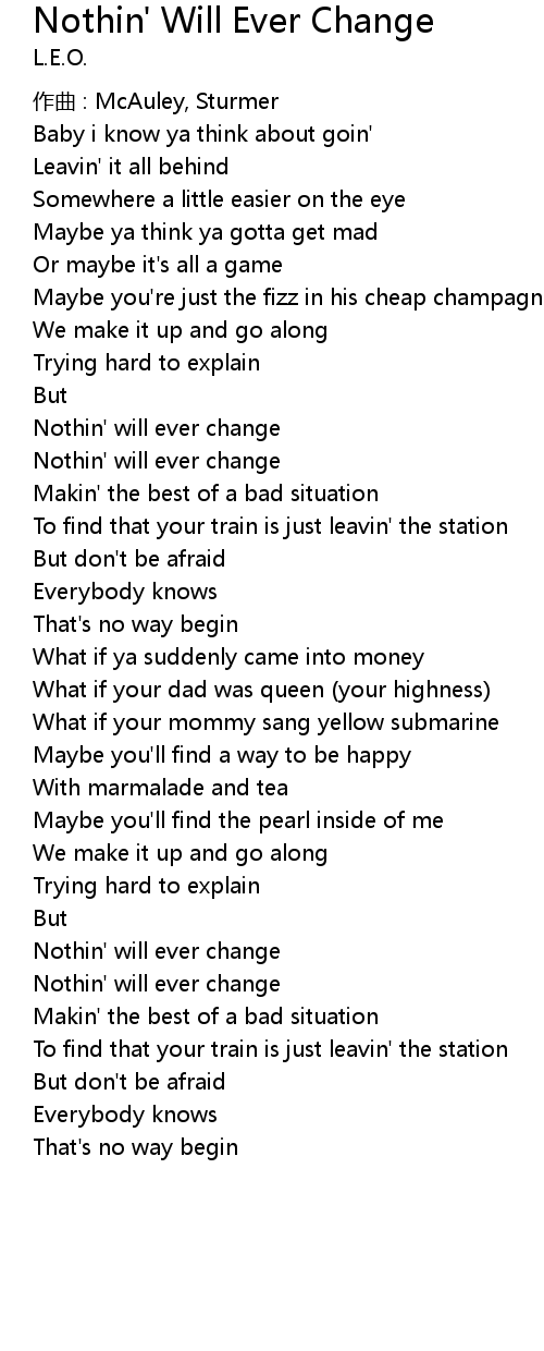 | Nothin' will ever change | |