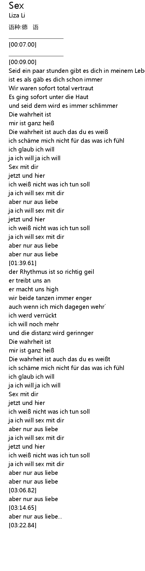 | [00:17.25] | Seid ein paar stunden gibt es dich in meinem Leben doch für mich |