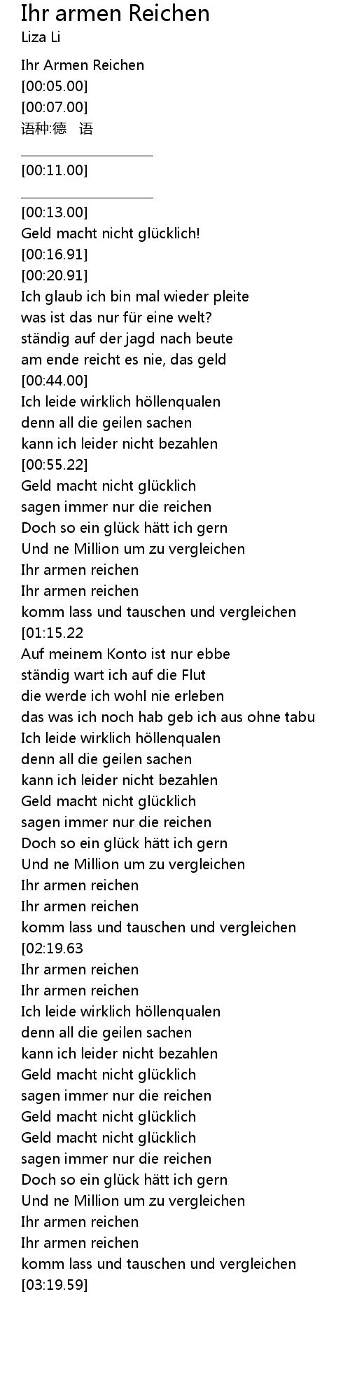 | [00:00.00] | Geld macht nicht glü cklich! |
