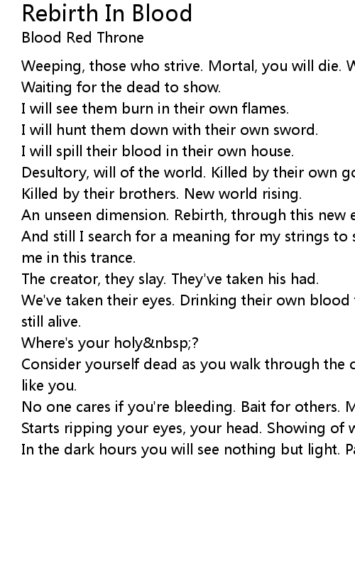 We've taken their eyes. Drinking their own blood to survive. I saw him and I'm still alive. |