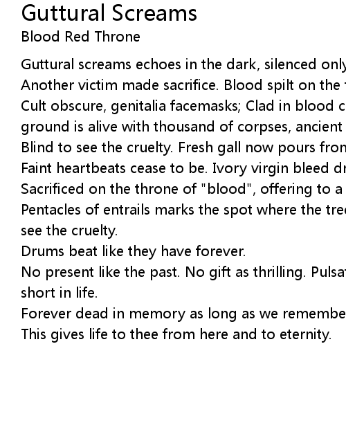 Another victim made sacrifice. Blood spilt on the throne as before. |