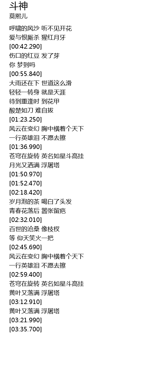 | [03:00.490] | cang qiong zai xuan zhuan ying ming ru xing dou gao gua |