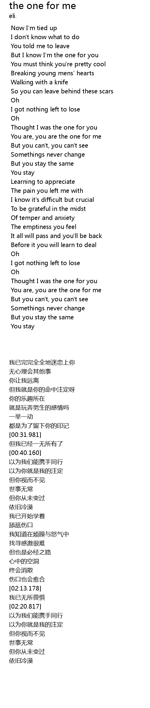 But I know I'm the one for you |