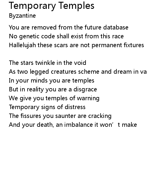 | Song | Temporary Temples |