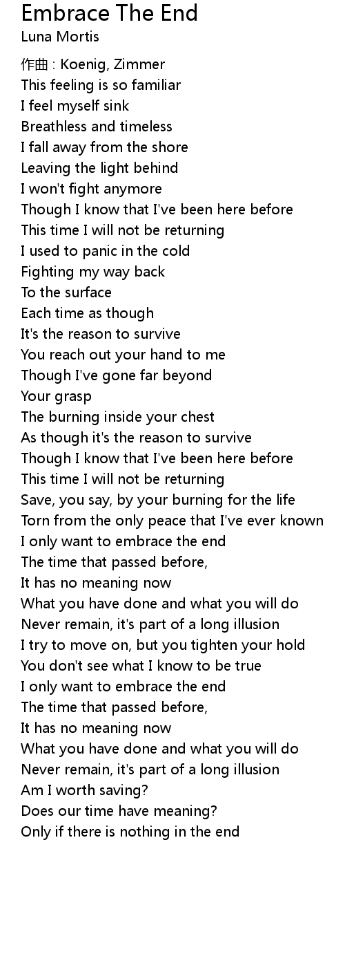 | I only want to embrace the end | |
