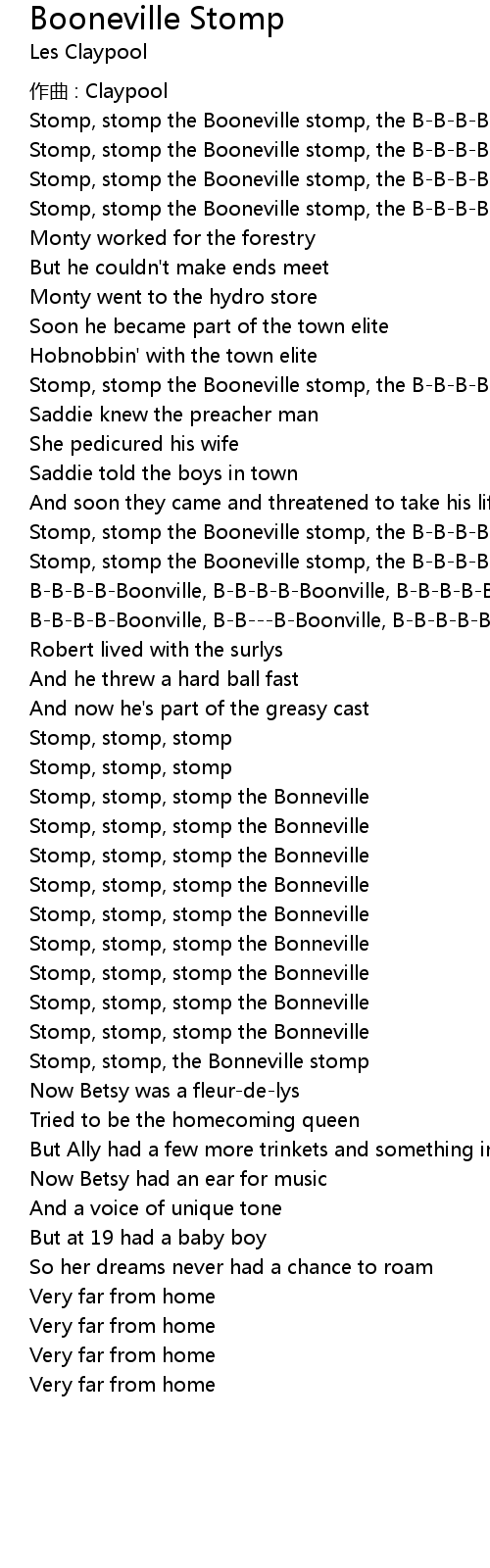 | Stomp, stomp the Booneville stomp, the B-B-B-B-Boonville stomp | |