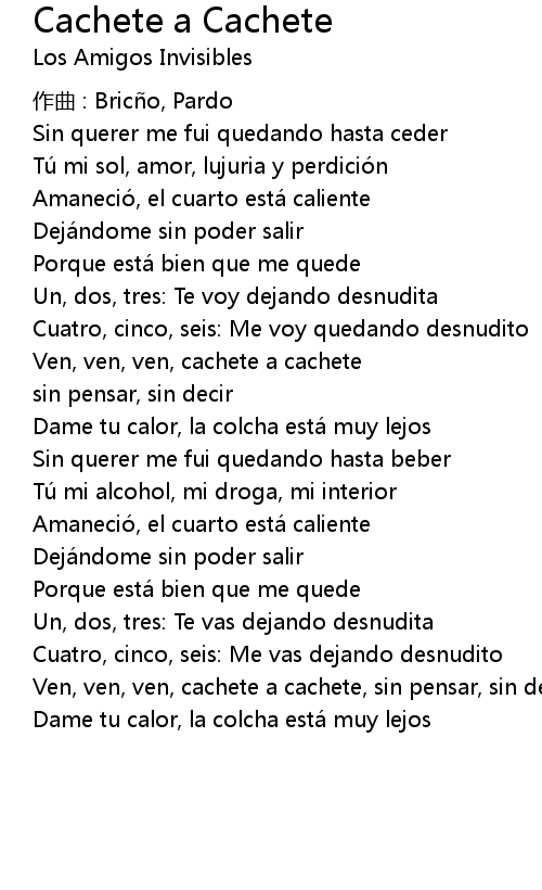 | Ven, ven, ven, cachete a cachete | |