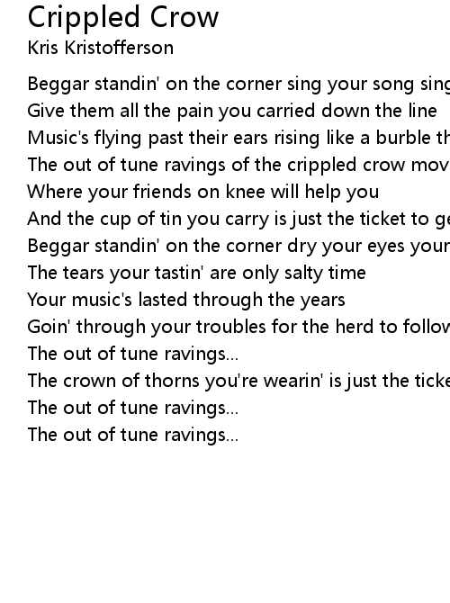 The out of tune ravings of the crippled crow movin' down the ladder slow |