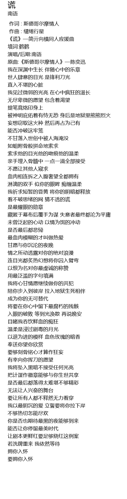 | [00:00.698] | 《谎》—简亓向横同人应援曲 |