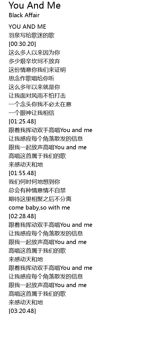 | [03:15.48] | 跟我一起放声高唱You and me |