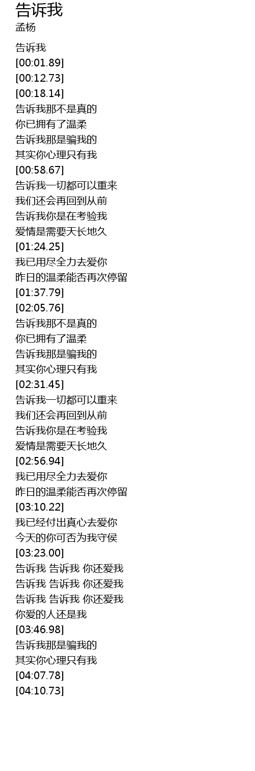 | [03:28.99] | 告诉我 告诉我 你还爱我 |