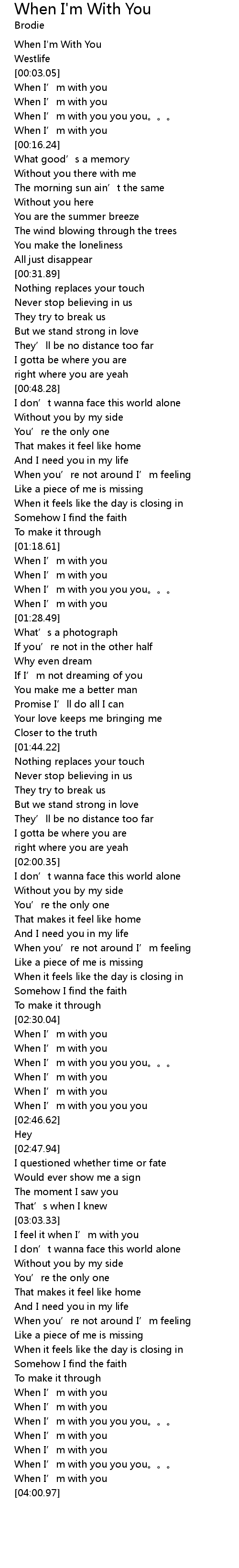 | [03:47.07] | When I’m with you |