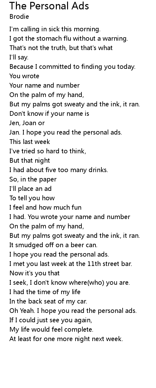I hope you read the personal ads. |