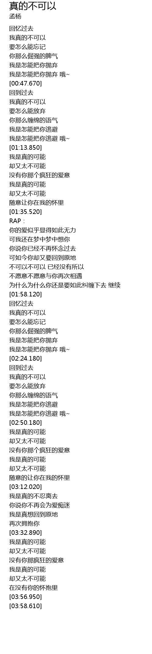 | [02:01.420] | wǒ zhēn de bù kě yǐ |