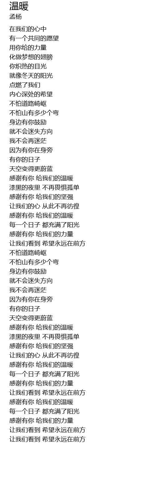 | [03:53.960] | 感谢有你 给我们的温暖 |