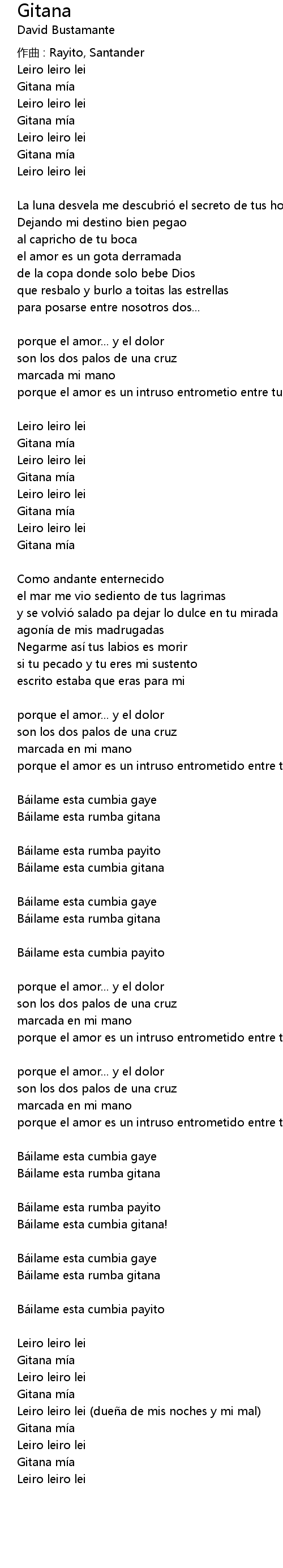 | porque el amor es un intruso entrometio entre tu y yo ay gitana mí a... | |