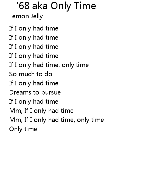 | If I only had time, only time | |
