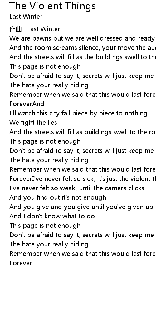 | ForeverI' ve never felt so sick, it' s just the violent things | |
