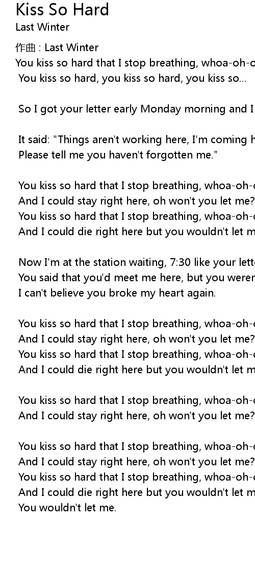 | You kiss so hard that I stop breathing, whoa-oh-oh. | |