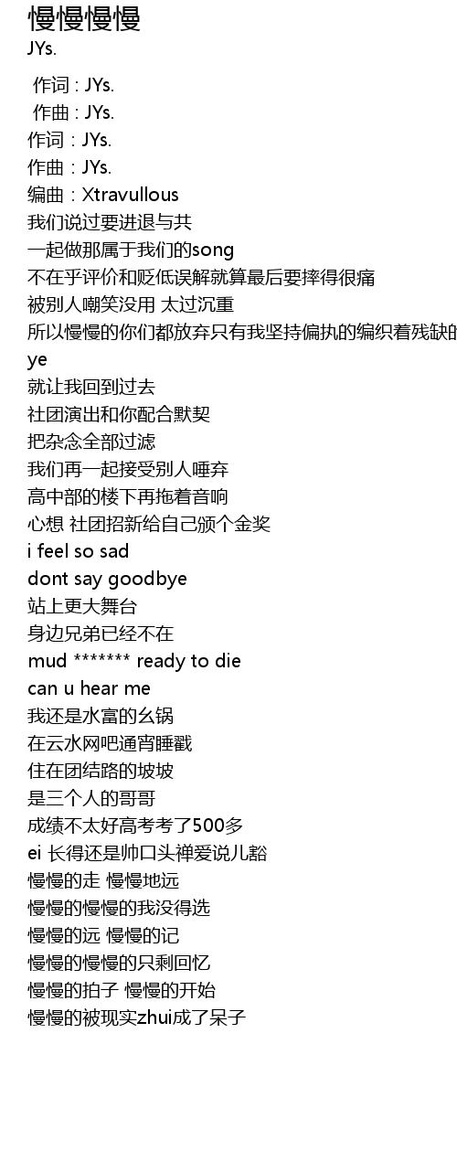 | [00:03.425] | 作词:JYs. |