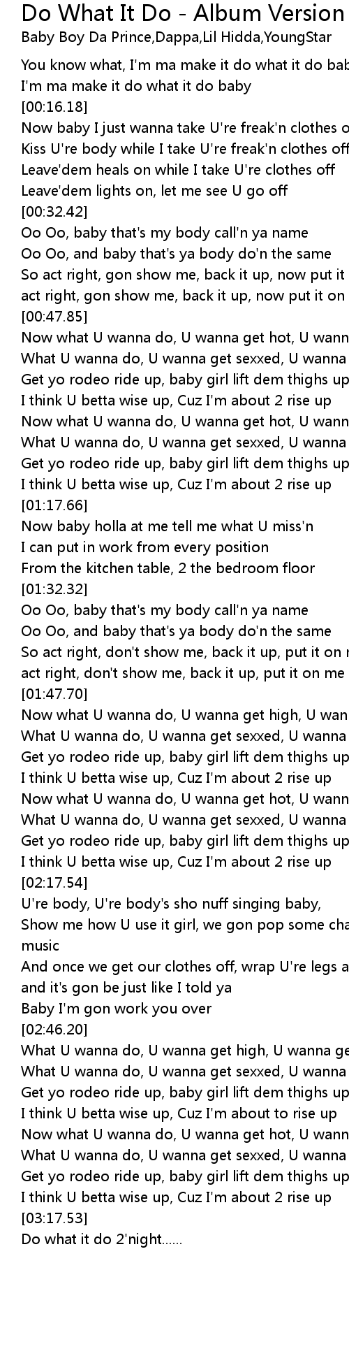 I'm ma make it do what it do baby |
