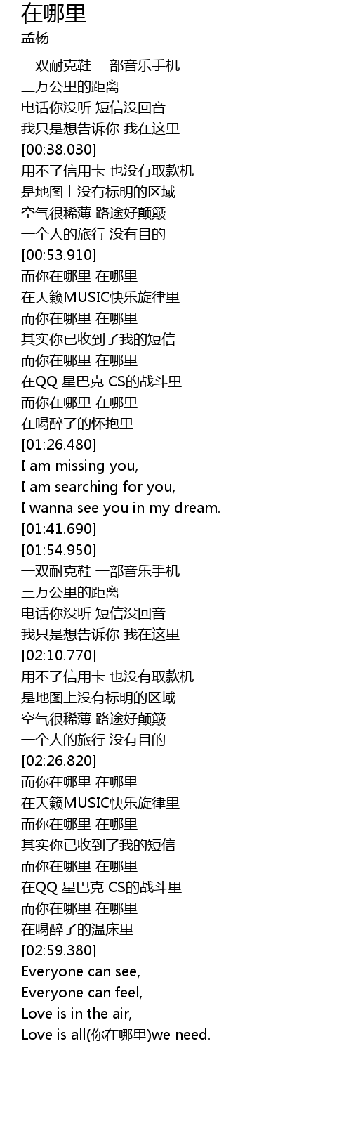 | [02:33.740] | 而你在哪里 在哪里 |