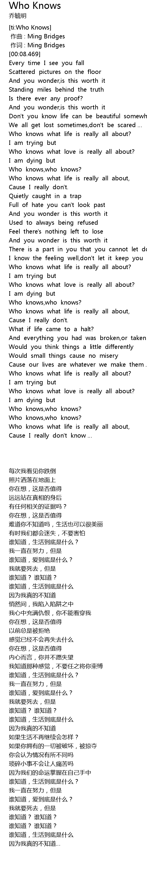 | [00:01.00] | 作词 : Ming Bridges |