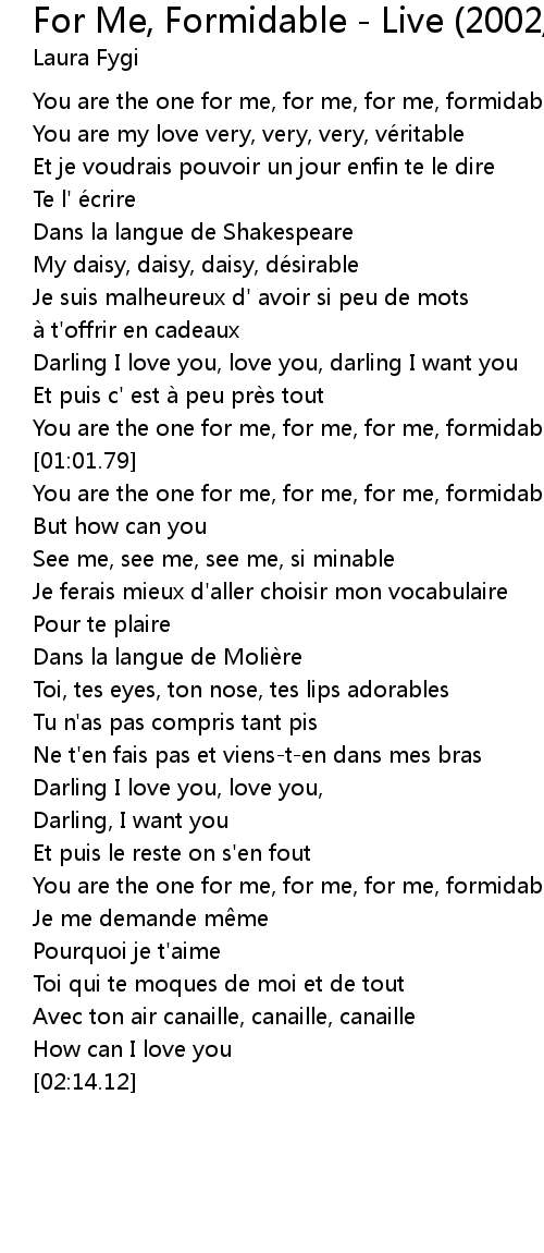 | [00:07.32] | You are the one for me, for me, for me, formidable |